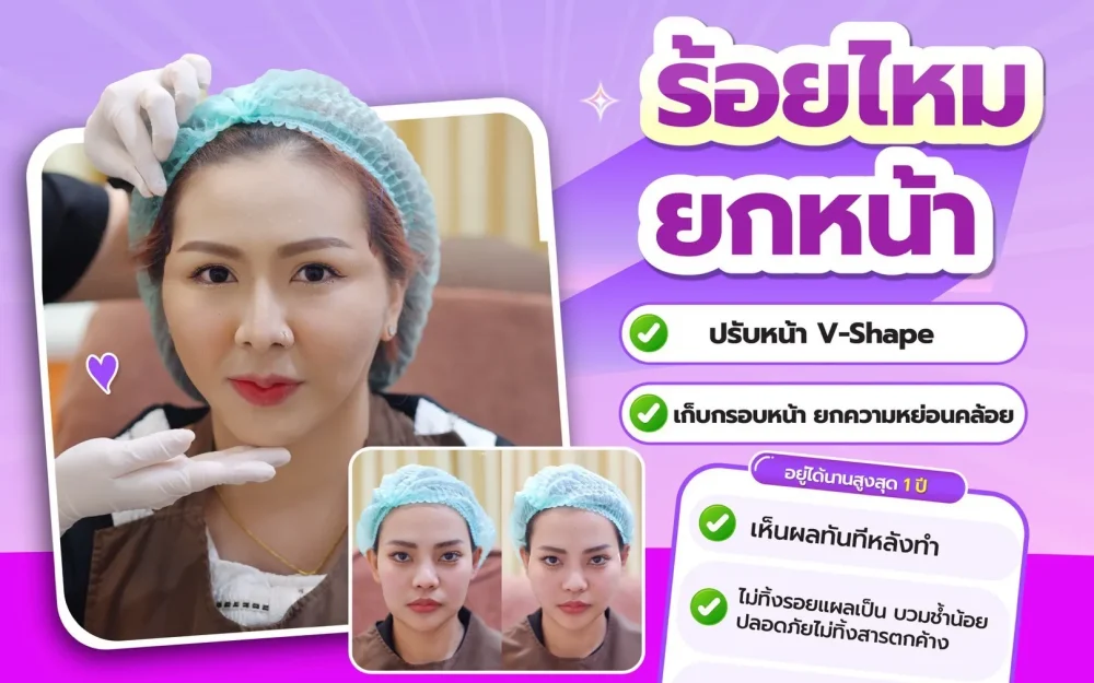 การร้อยไหมยกกระชับหน้า (Thread Lifting) คือเทคนิคปรับรูปหน้าเรียว V-Shape โดยไม่ต้องผ่าตัด โดยใช้ไหมละลายที่มีเงี่ยงร้อยเข้าไปใต้ผิวหนังเพื่อดึงเนื้อเยื่อที่หย่อนคล้อยให้ยกกระชับขึ้นทันที ช่วยแก้ปัญหาร่องแก้ม ร่องน้ำหมาก หางตาตก และเหนียง กระตุ้นคอลลาเจนใต้ผิว ผลลัพธ์อยู่ได้ประมาณ 6-12 เดือน